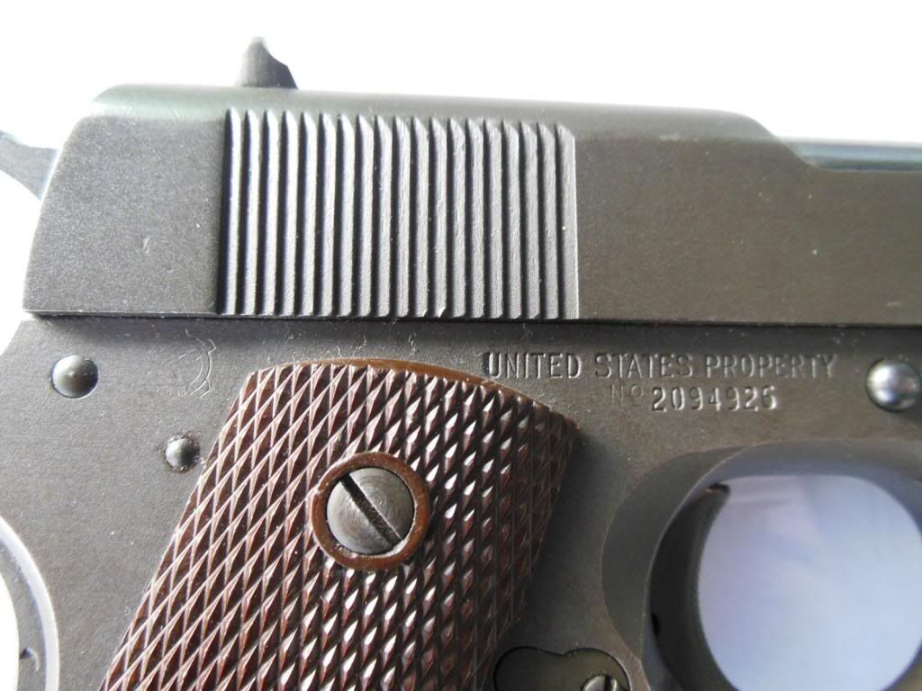 I know there is alot of knowledge on this site as I have seen for a long time. If I could ask, would you fine folks check in SRS for a Ithaca 1911A1 ser#2094926. ALSO, I would like to get a aprox. value on this weapon. All parts and finnish are correct as per Clawson book. Condition I woud say 95-98%. As per Clawson book says it was shipped 17 Nov. 1944 to Officer in Charge. Naval supply depot. Oakland, Ca.