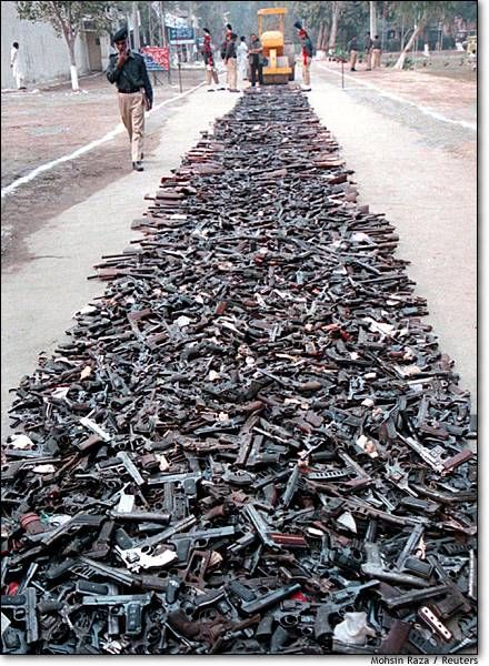 This photo shows Pakistani authorities recycling a few handguns. That effort should make Pakistan a lot safer place, right?