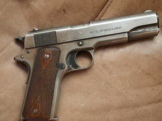 For Christmas when I was about 16 he gave me an old dovetailed ammo box that was nailed shut. Inside was the pistol, 3 magazines, a box of shells and his old Calvary belt, (apparently so it wouldn't fall into my underwear). I carried the pistol for a few more decades, have a few more stories to add to it, including killing a javalena in Texas. He was running at 100 yards. (Lol! Just kidding). Still have the pistol. Still shoot it occasionally and keep it clean and oiled as he taught me. Wish my old buddy was still here to do chores with and shoot that old colt together. I agree with what others have said. Refinishing an older relic takes the beauty and romance away from the history and stories the firearm has lived.