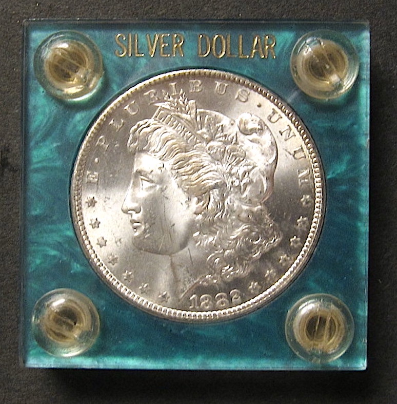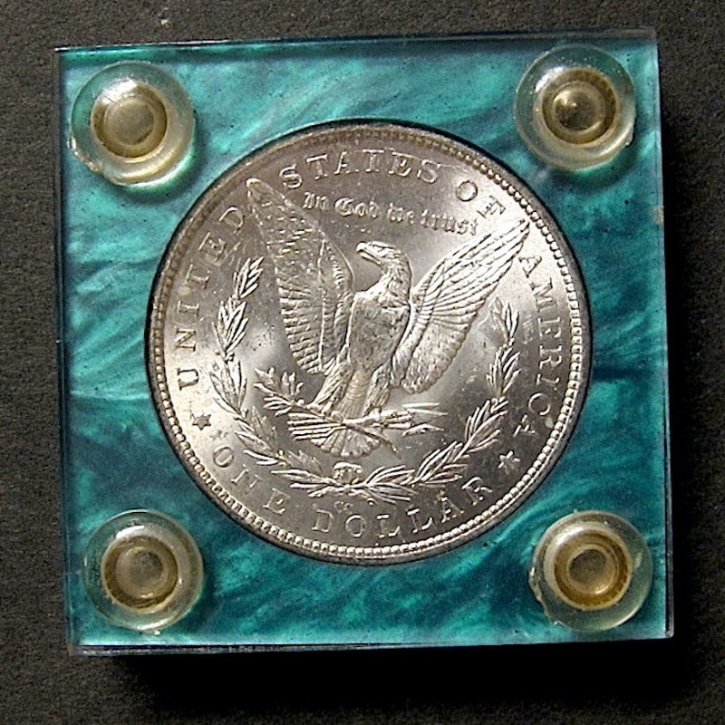 A scarec 141 year old silver dollar minted at the Carson City, Nevada mint. Someone must have put it up when it was newly minted.
