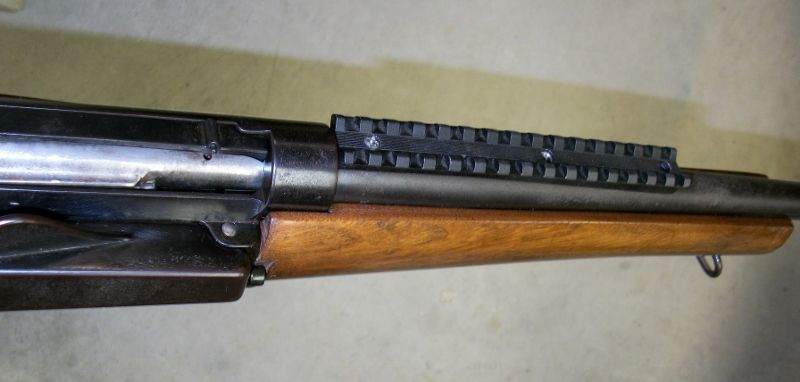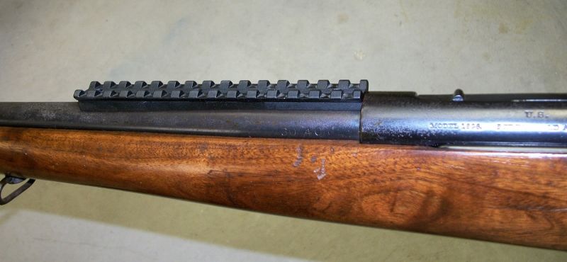 Here are a few pictures of my cutoff sporter with the Kraghaus mount and scope. The mount uses the rear sight holes and screws... and I had to (carefully) drill and tap a third hole for the rear screw. I used a 6x32 taper head stainless machine screw.