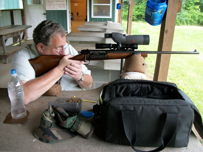 I have included a picture of my sporter, a close up of the mounted scope, and my target.