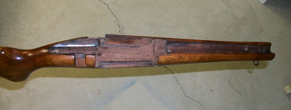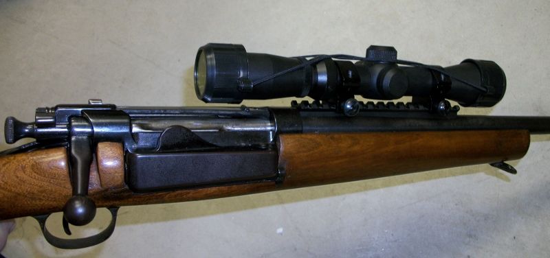 Smokechaser, here are a couple pictures: The left side as it was before I removed the Redfield 102K rear sight, and the stock itself, so you can see how it beds. The work done fitting the stock is actually pretty good, but there is a crack in the area where the receiver side plate is because the wood is quite thin there. It's not in an area that affects the strength of the stock though.