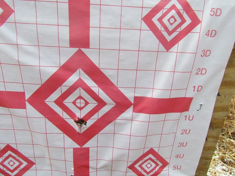 First shot at 100yds. This is the 3rd shot from new build with original sight settings.
