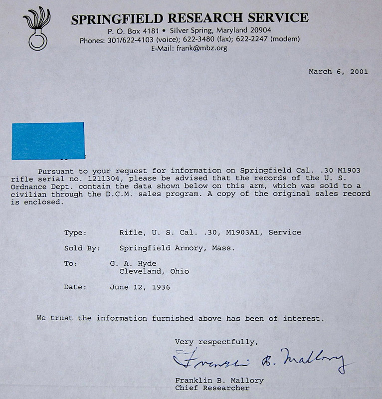 I obtained this letter on one of the Sales service rifles. At the time it was sold you could have the rifle fitted with the pistol grip stock for an additional $0.86. The pistol grip stock did not have a P proof as nothing was done except replace the wood, but does have a SA/SPG cartouche.