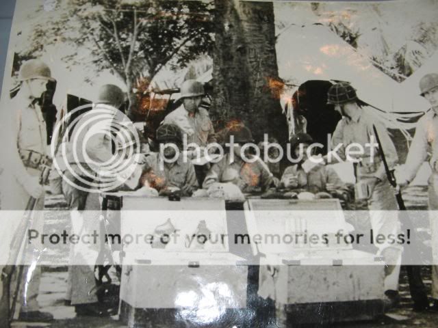 They appear to be officers, etc. With guards and pistols, it appears to be pay day and those are stacks of cash. I suspect they are disbursing officers doing their duty. I did it as a 2nd and 1st LT and it looked the same as in the picture. That was before check to bank, and pay day musters were really pay day musters...