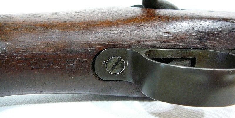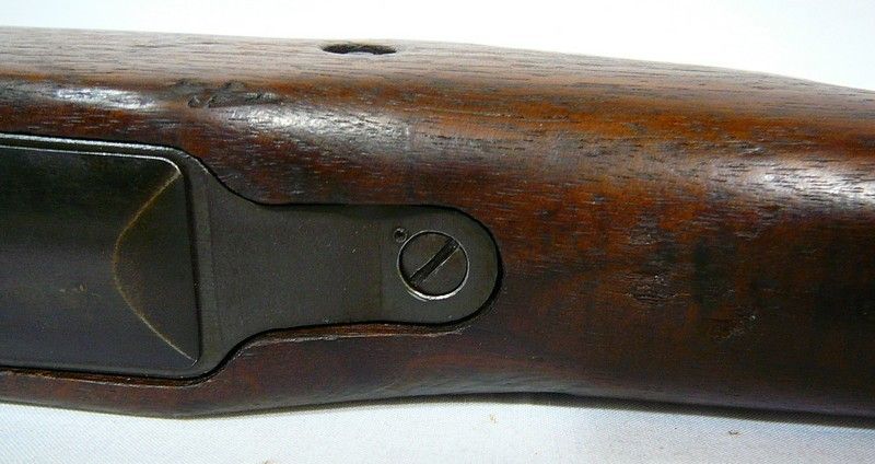 All stampings in the stock are sharp and clear and have never been sanded or worn. The only cartouche on the left side of the wrist is an L or a T. I'm not sure which because I can't find my glasses. There is a spot on the left side of the butt that appears to have had a tiny dab of some type of filler put on it that was meant to cover a natural feature of the wood where a branch was growing. Maybe a very tiny age crack in the wood that somebody just put a smidgen of filler on. This can be scraped or cleaned off with acetone of course. I didn't do that because I didn't want to mess with the rifle.