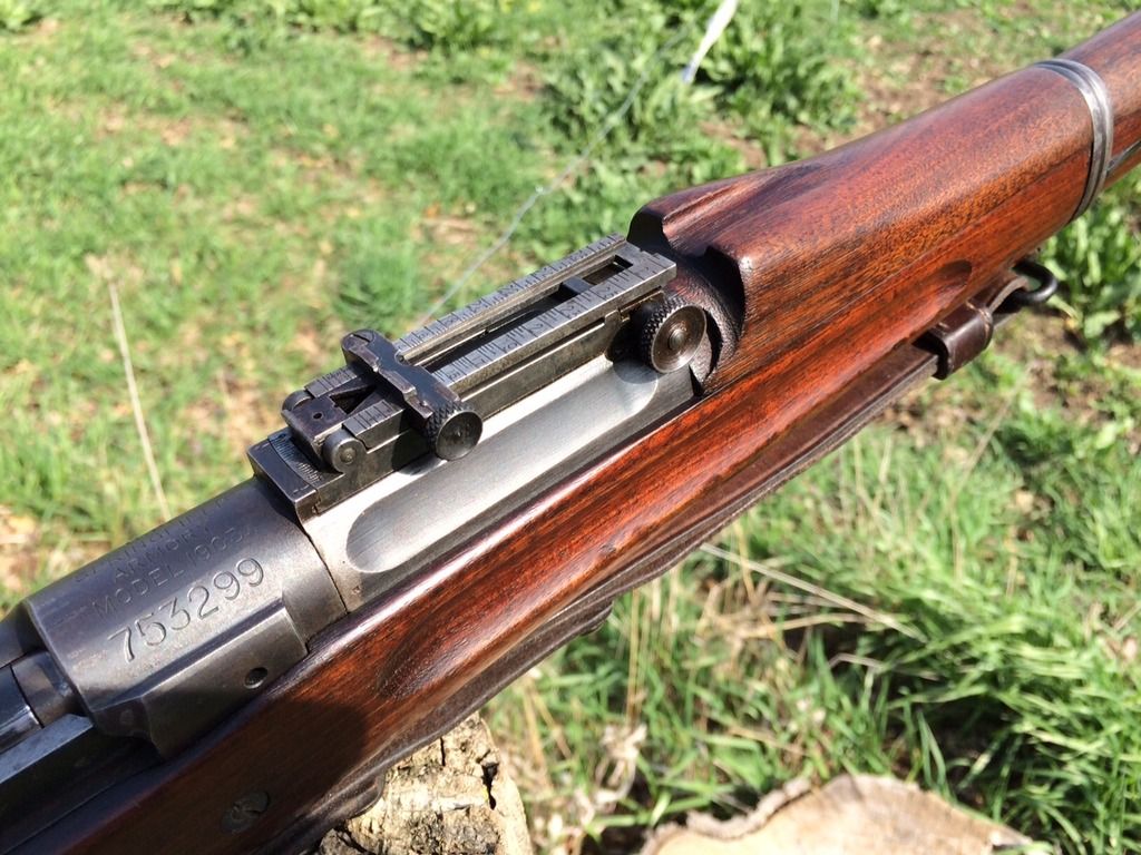 I'm sort of thinking the trigger housings were staked late at Eddystone. Just because my other late original Eddystone is staked too. But this is the only two original ones that I'm making my pattern from. But they appear done the same style. This is the one I decided to keep. I got this probably 15 years ago now. I bought some stuff off a WWII vet and he said his dad brought this home from WWI. They both are very similar in finishes and parts, but I know I took this one apart when I first got it. So I turned the screws on this one myself. Heck they might have been still staked when I got it. I didn't know anything back then so I probably am the one that broke the staking.