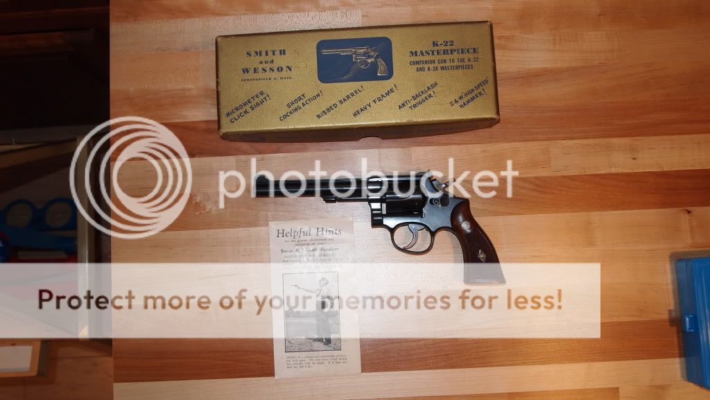 Nice looking k-22. I saw one at a dealer in CA about 6 years ago, and it was in 99 % condition. In CA it had to be at least 50 years old to be sold, so I knew it was hard to find. I paid 700 for it, and lots of people thought that was way too much, but from what I see they are more now. It's my favorite plinker, fun to shoot and super accurate.Comment