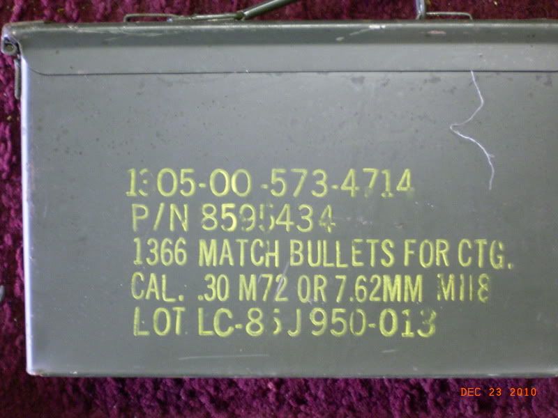 In addition to the bullets mentioned, Match type ammunition has been produced by the AMU and various WTBns over the years using many different bullets, mostly those manufactured by Sierra, Western, and the AMU.