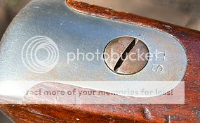 On this rifle, the latch has a Domed shape and is not ground down flat like on later rifles.